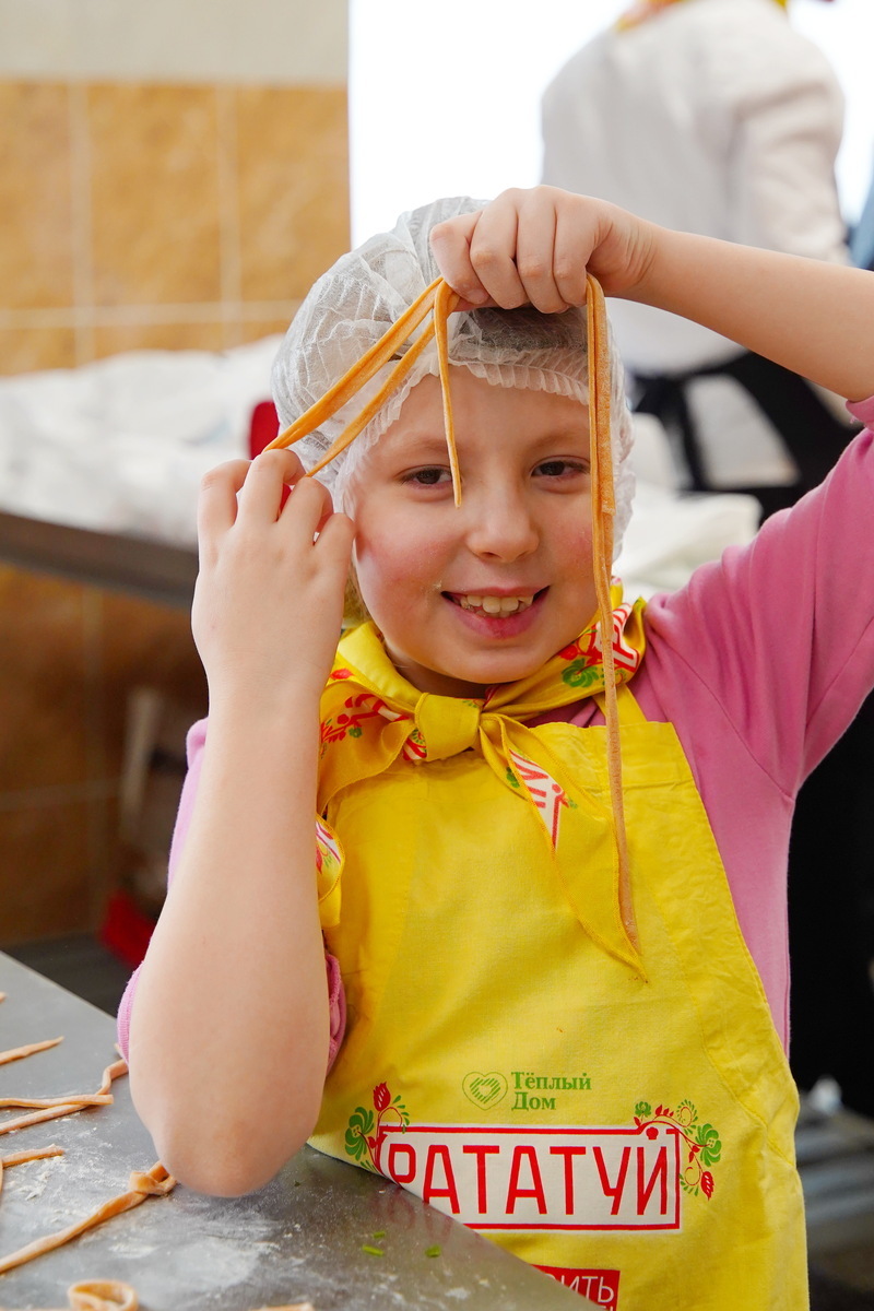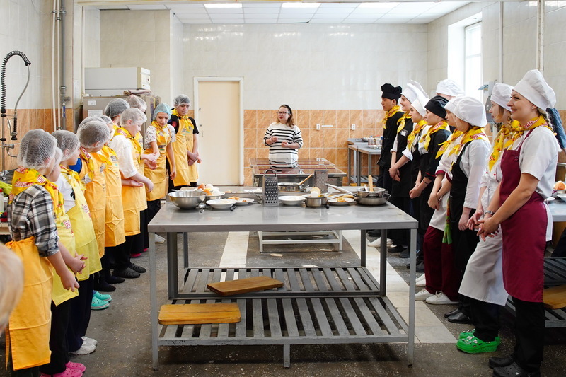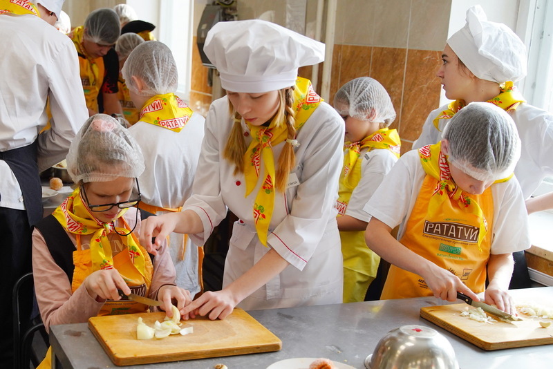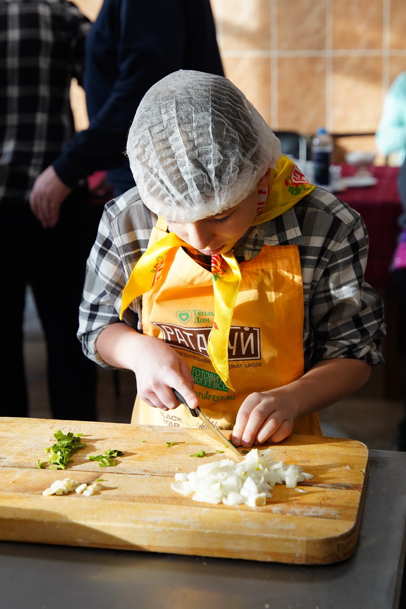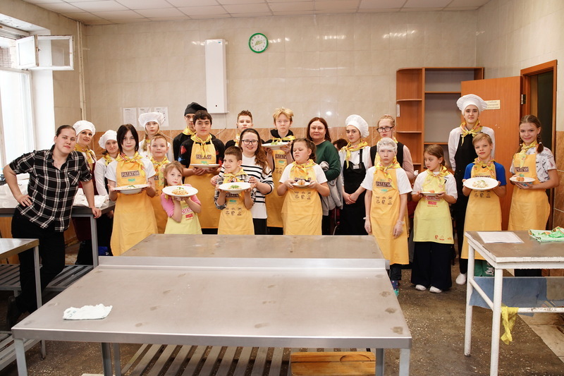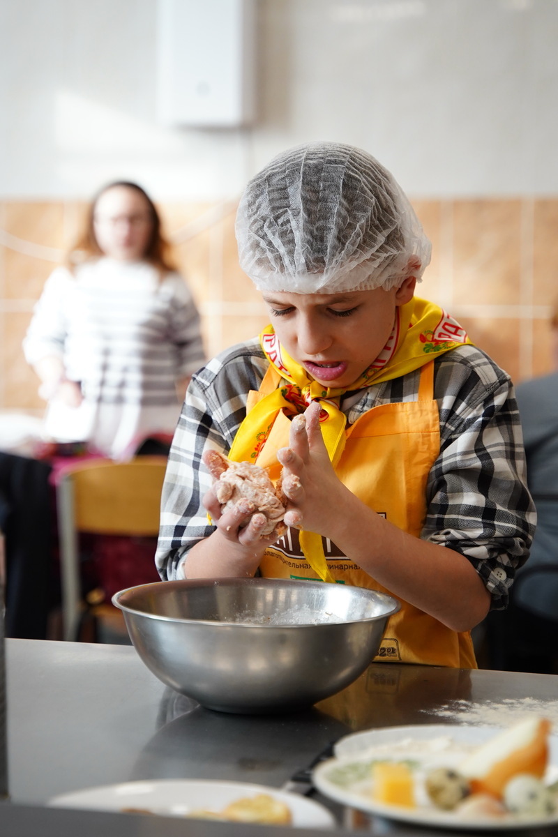 Кулинарным уроком руководила шеф-повара Ксения Викторовна Романенко. Для детей из приюта г. Копейска, детей из приемных семей и «особенных» детей подготовили техкарты блюда, по которым они должны были готовить. Сначала распределились по рабочим местам и волонтерам-студентам. Чтобы каждый ребенок имел свое производственное пространство и не простаивал в ожидании задания.