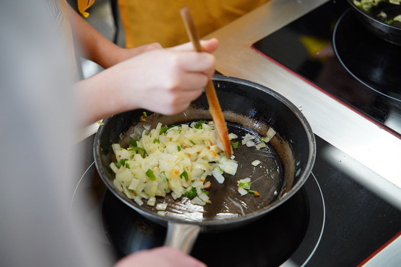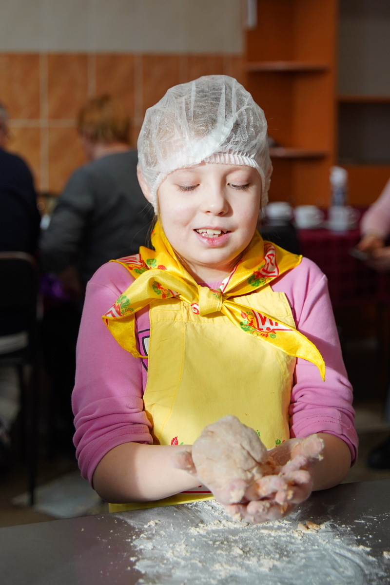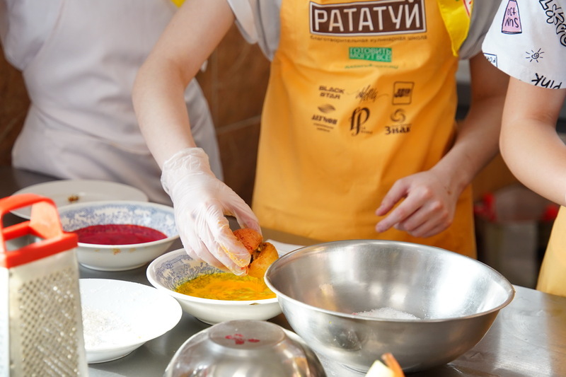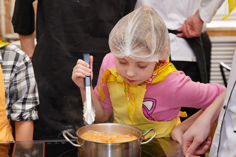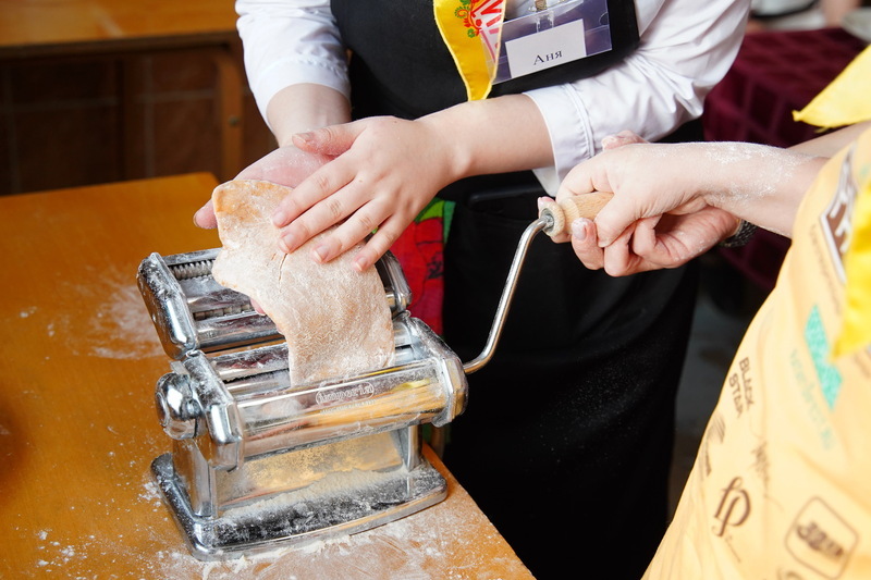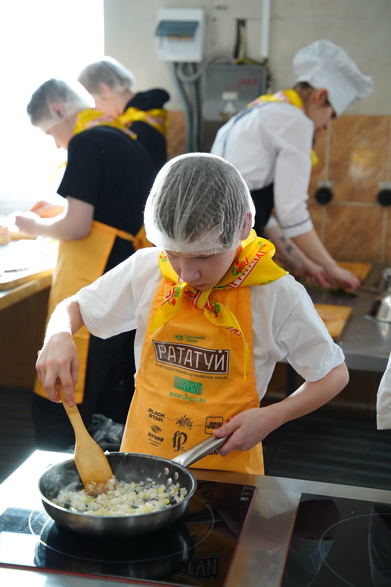 Кулинарным уроком руководила шеф-повара Ксения Викторовна Романенко. Для детей из приюта г. Копейска, детей из приемных семей и «особенных» детей подготовили техкарты блюда, по которым они должны были готовить. Сначала распределились по рабочим местам и волонтерам-студентам. Чтобы каждый ребенок имел свое производственное пространство и не простаивал в ожидании задания.